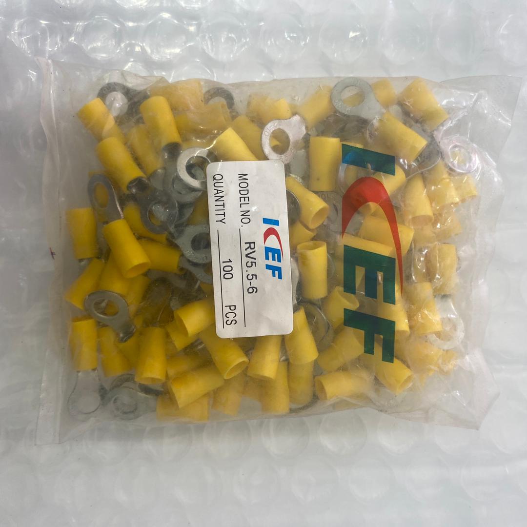 سر سیم گرد زرد در بسته 100 تایی با سایز 5.5 و سوراخ 6